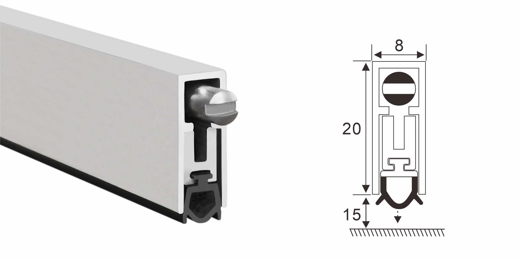 ? 安裝方式:鋁合金門扇底部槽內,用自粘膠固定。