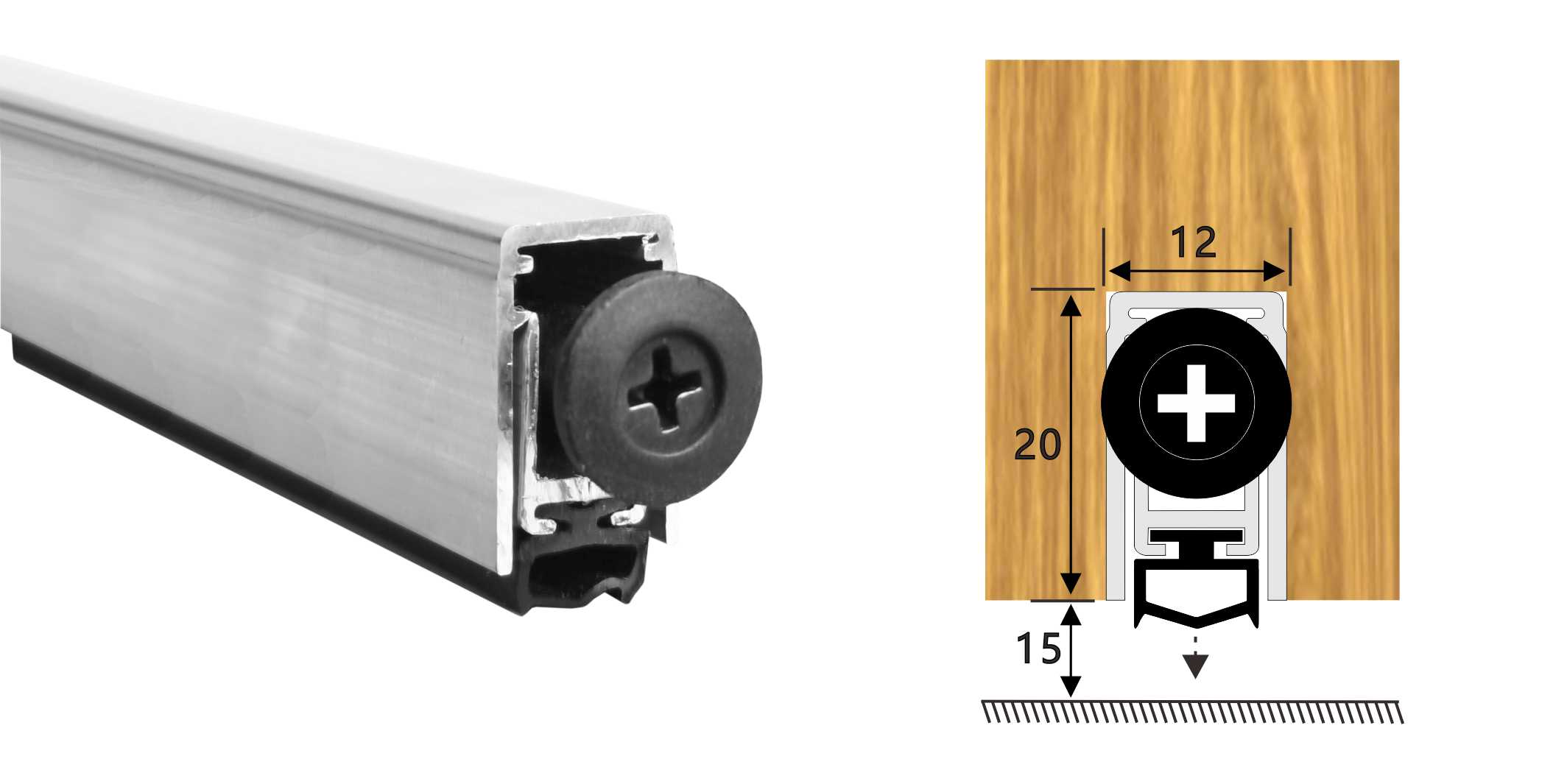 嵌入式門底自動升降式密封器,四連桿機(jī)構(gòu),適用于門扇內(nèi)開槽的門。安裝時需在門底有一個20mm*12mm的通槽,將產(chǎn)品放置其中,將兩端蓋板和密封器用螺絲固定(或用螺絲從密封條底部向上固定),使用本產(chǎn)品不影響門的整體風(fēng)格。
